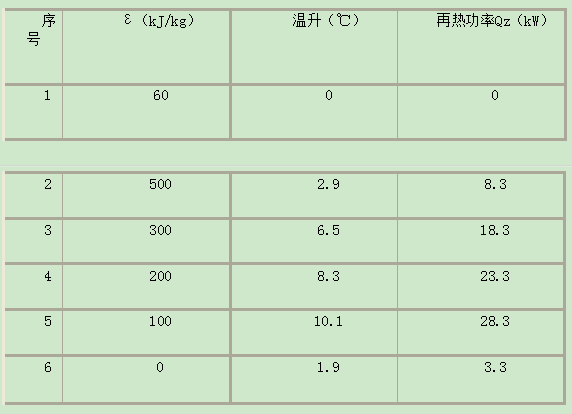 表2熱濕比ε和最小再熱量的關系