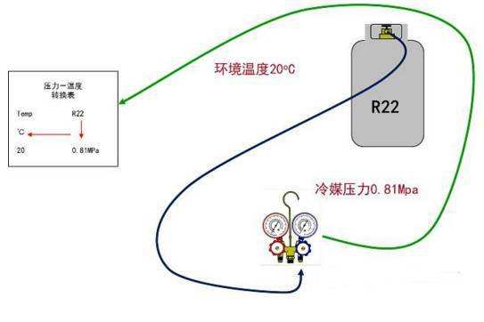 機房空調(diào)機組的充注量可在實驗室精確測定 ,然后根據(jù)現(xiàn)場情況進行適當(dāng)修正 ,就可基本確定每一臺現(xiàn)場安裝的機房空調(diào)機組的充注量 ,然后據(jù)此可用稱重法將制冷劑充入機組。但此方法在實際應(yīng)用中有兩個問題 ,有時機組的充注量的準確值不容易確定 ,有時現(xiàn)場不容易找到準確稱重的設(shè)備 ,此時只能用觀察壓力法進行制冷劑的充注。