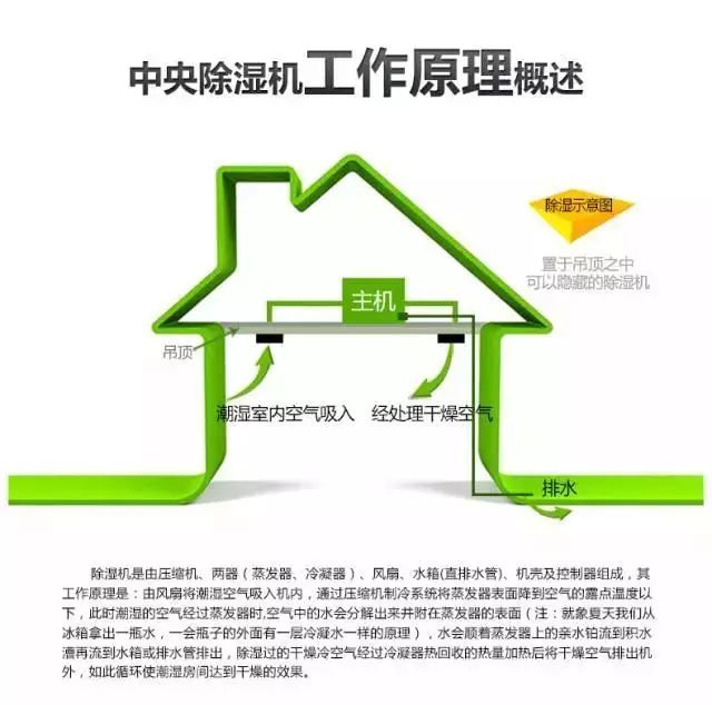 解決因除濕機重量過大,不易在天花內(nèi)安裝的問題,從而可輕松安裝在天花板上方,彌補嵌入式空調不能除濕的缺點。